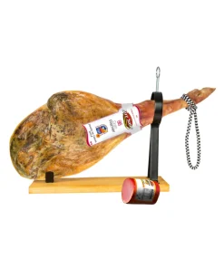 Aire Sano – Jamón de Teruel DOP Gran Premier (8-8.5 Kg) + Taco de Lomo Padre 100% Duroc de 310g – Jamonero, Cuchillo y Chaira – Sin Gluten y Sin Lactosa – Envasado al vacío